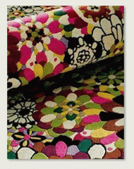 Als anspruchsvoller Hersteller verbindet Missoni geschickt das Neue und das Klassische. So sind nicht nur originelle Wolltep- piche mit dem typischen Miss- oni-Design im Angebot zu fin- den, sondern auch wunder- schöne und farbenprächtige Neuheiten, die aus lauter runden und bunten Elementen bestehen.